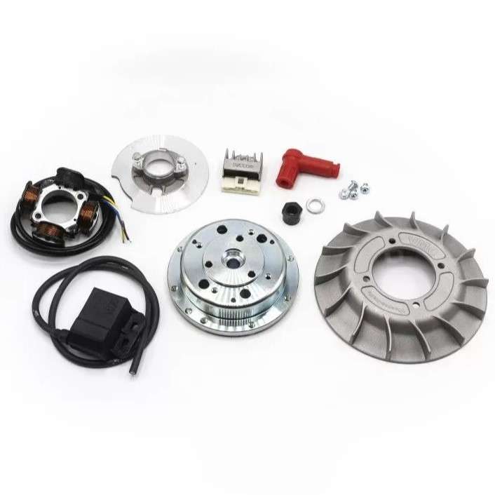 Electronic ignition with Variable ignition timing and CNC Flywheel for smallframe Vespa models.